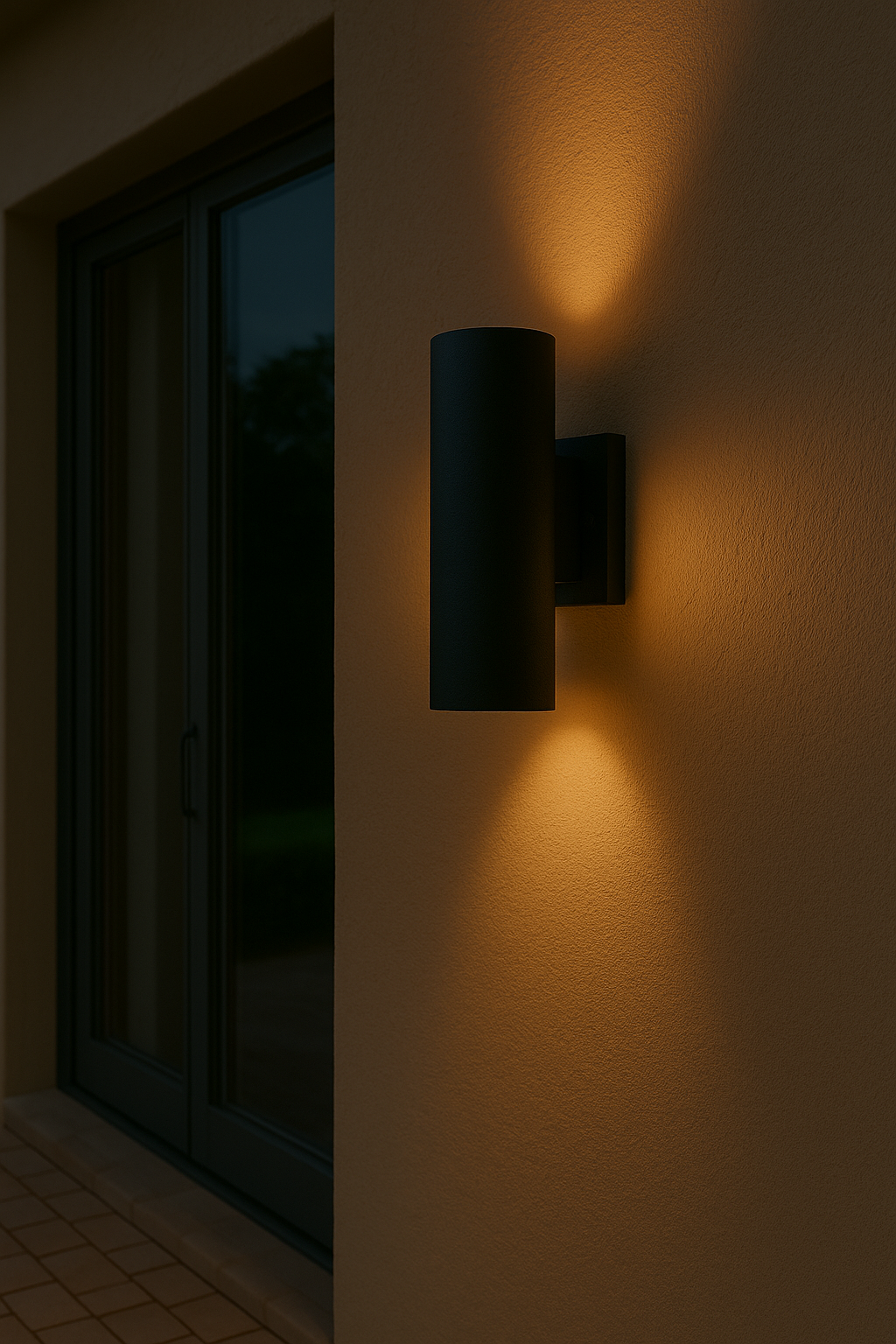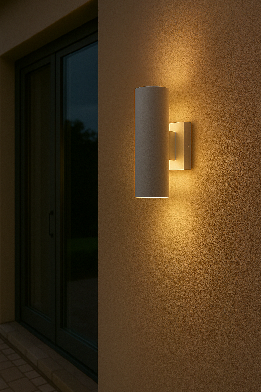 This modern cylinder outdoor wall lamp adds a stylish touch to any exterior space. With its sleek cylindrical design, it casts light both upward and downward, creating a dramatic yet functional glow. Ideal for gardens, patios, and entrances, it combines modern aesthetics with outdoor performance.